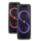 Poderoso falante de porta compatível com a tecnologia Bluetooth 5,0 e TWS, equipado com 8 ” subwoofer duplo e potência de saída de pico de 300W. D &e jate master por seus impressionantes efeitos de som e iluminação n & o ntate a festa em que você deseja graças a sua bateria integrada.