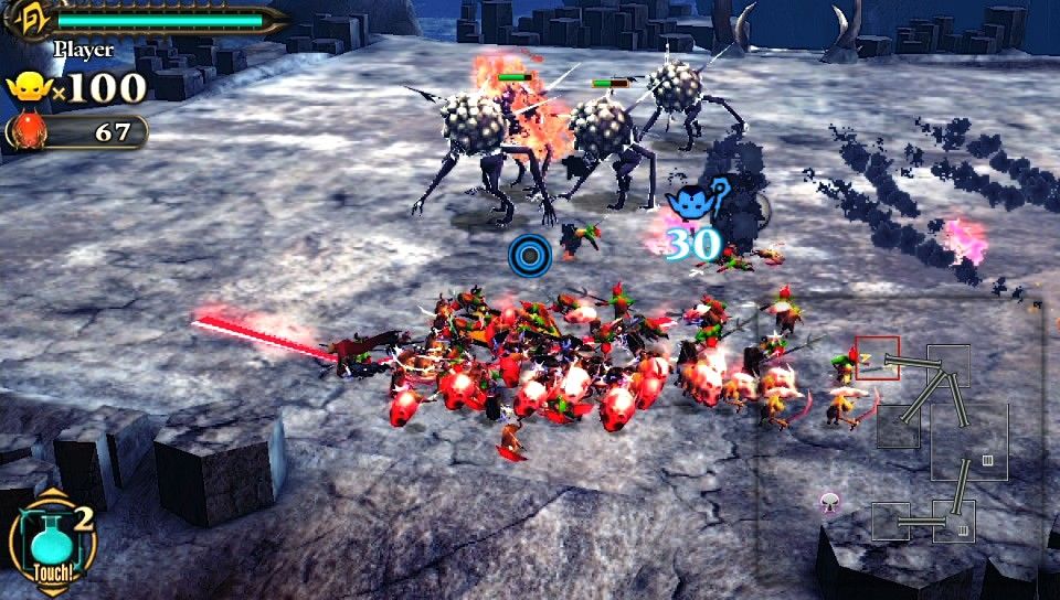 Espreme ao máximo as características técnicas de Playstation Vita. Utiliza o painel táctil traseiro para fazer que os goblins toquem diferentes instrumentos, que ativarão propriedades especiais, tais como reviver soldados ou aumentar a força dos mesmos. Quando melhor saibas combinar todos estes poderes, mais singela será a batalha e mais pontos conseguirás.