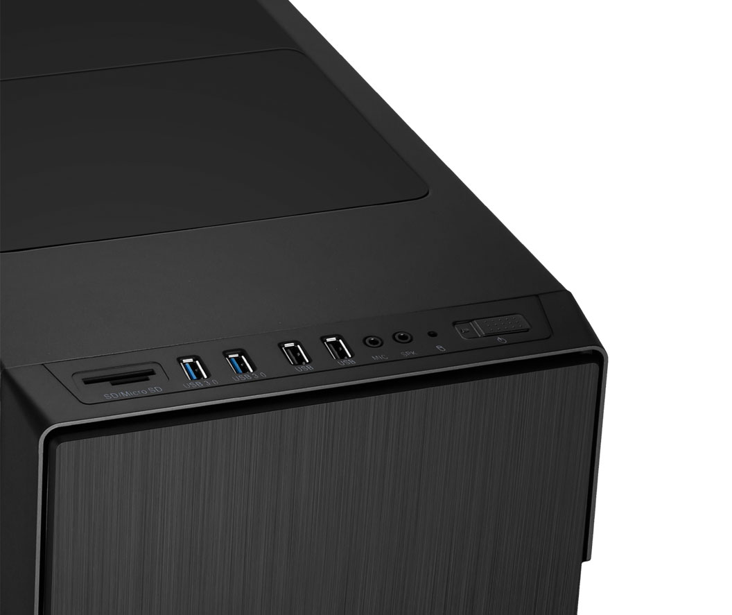 No painel superior encontramos duas portas USB 2.0 e duas portas USB 3.0, bem como conexões de áudio. Além disso, Hummer ZN tem um leitor de cartão extra; micro SD e SD, que permite uma transferência de dados confortável e acessível para o equipamento em todos os momentos.