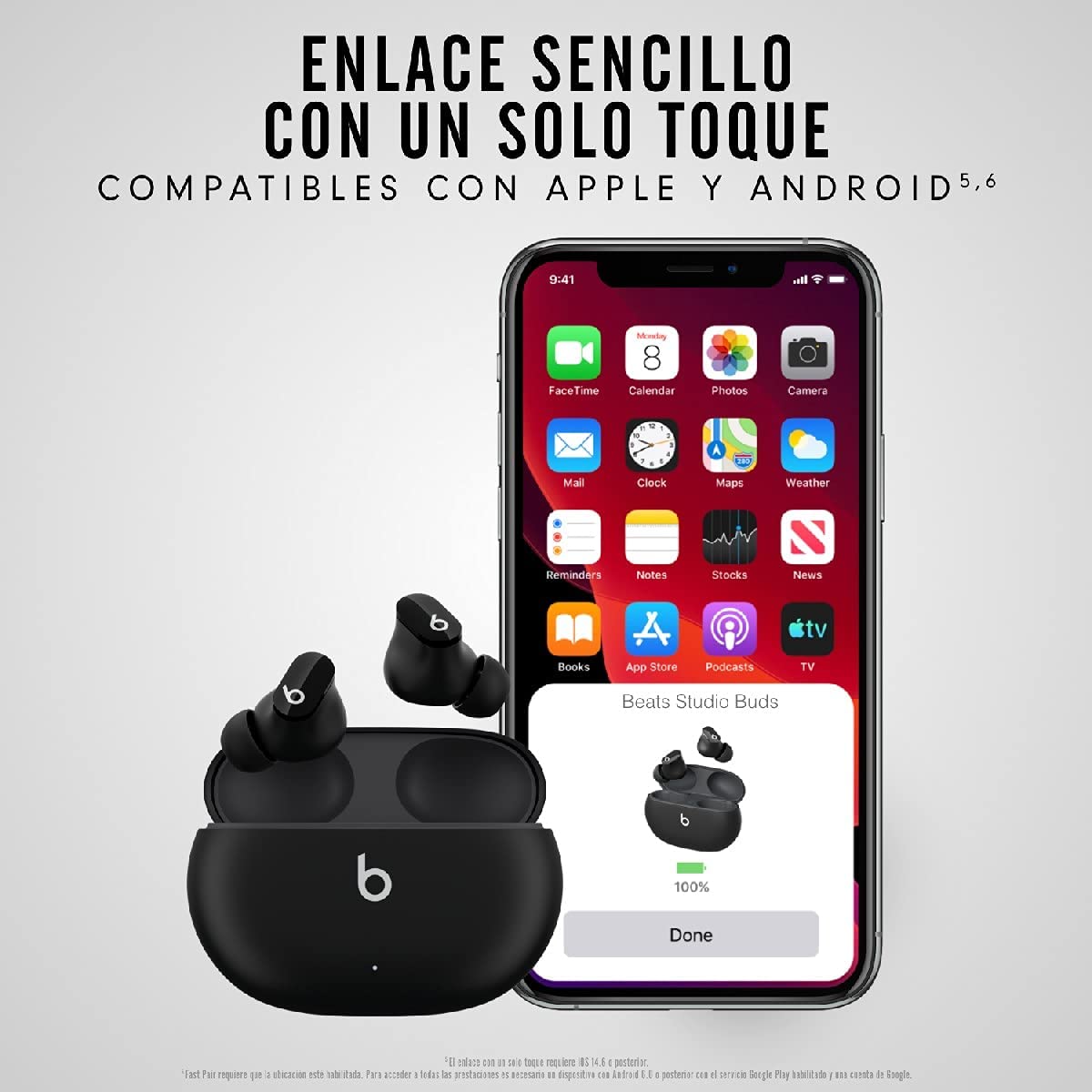 Os Beats Studio Buds podem ser vinculados a dispositivos Apple6 e Android7 com uma única torneira, e podem ser facilmente conectados ao Bluetooth. No app Beats para Android você tem acesso a capacidades como controles integrados e você pode verificar o status do dispositivo (por exemplo, o nível de batedor ía) e instalar as atualizações de firmware. Em dispositivos Apple, esses recursos são integrados no iOS, você não tem que instalar nenhum apps, e você pode ativar Siri apenas dizendo que o « Hey Siri &racque .. 8 Adem &aecons, o conector de carregamento USB-C fornece uma única carga &o &o &o em ambas as plataformas, Apple e Android.