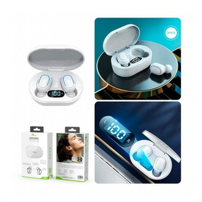 Estes fones de ouvido com conexão sem fio oferecem 3 horas de música sem costura com uma qualidade de som sonora. Eles são compatíveis com o maior modelo de modelos de Smartphone e tablet do mercado para garantir o uso da música e de chamadas limpas de forma universal. A abertura do caso mostra um indicador de carga do batedor ía de ambos os fones de ouvido mostrando a porcentagem.