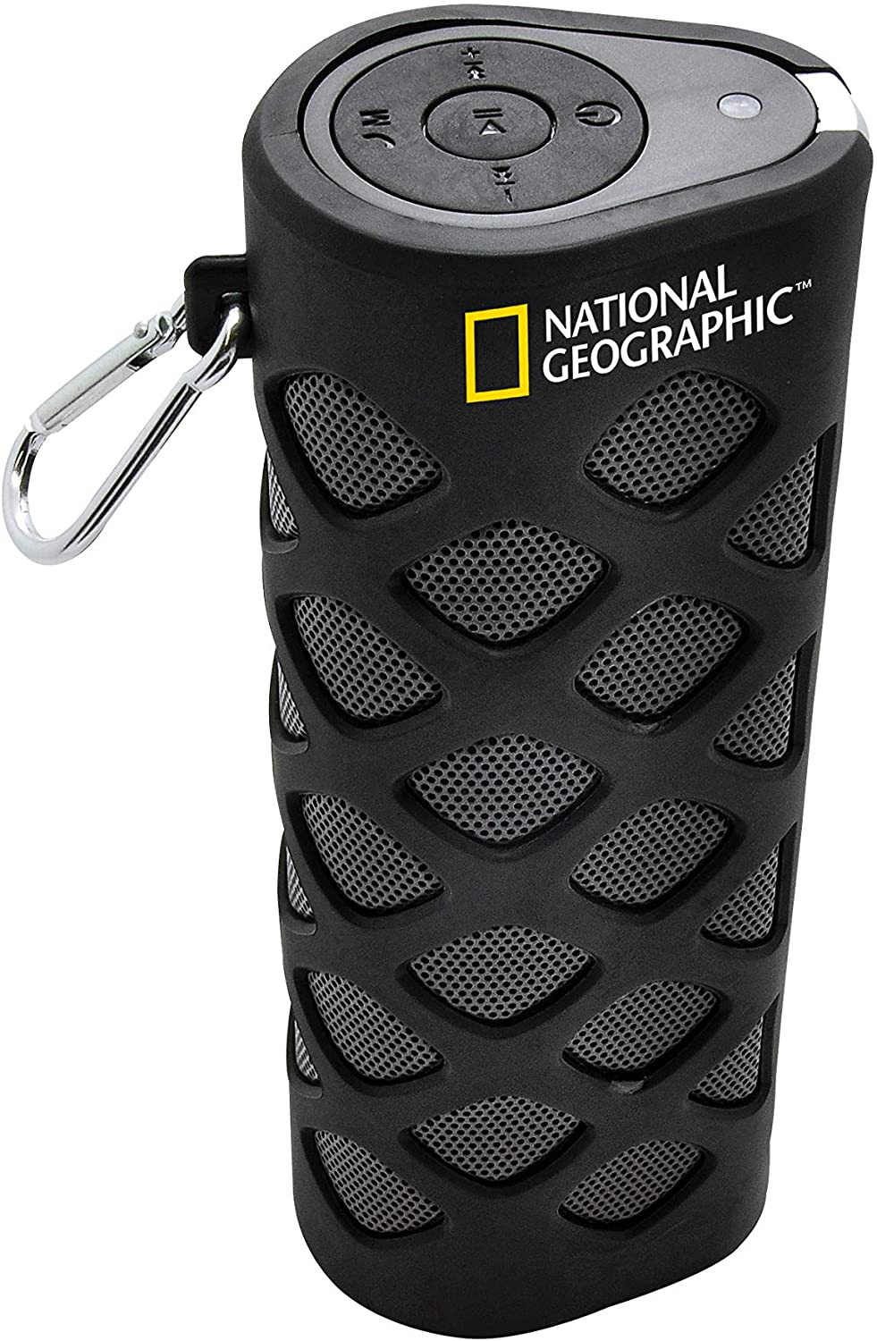 O alto-falante wireless National Geographic sem fio Bluetooth com capacidade PowerBank 5200mAh, o próprio alto-falante permite que o alto-falante carregue dispositivos para a conexão USB. Adem &arecurs este alto-falante é resistente à água (splashes e chuva, não suporta dipping it).