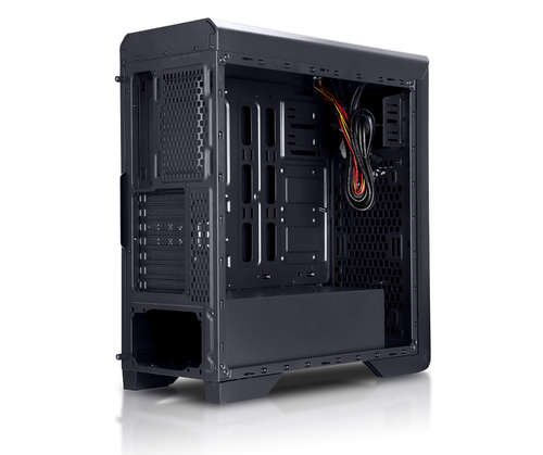 Graças à grade frontal e ventiladores, o fluxo de ar frio entrará diretamente dentro para refrigerar o gráfico e outros componentes. A disposição do PSU e do ventilador traseiro ajudará a conduzir todo o calor para fora, permitindo um fluxo de ar eficaz.