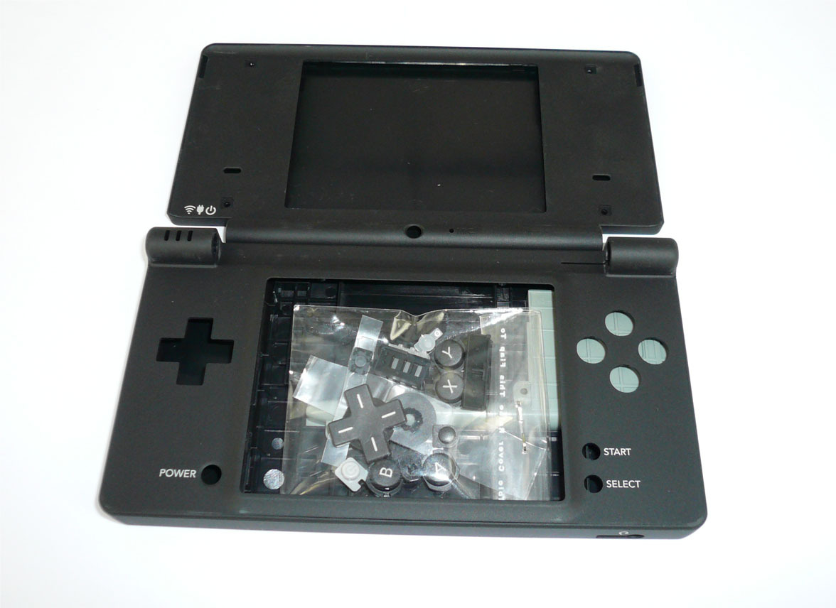 Carcaça de reposto para Nintendo DSi. Inclui todos os botões, stylus e parafusos necessários para sua montagem.