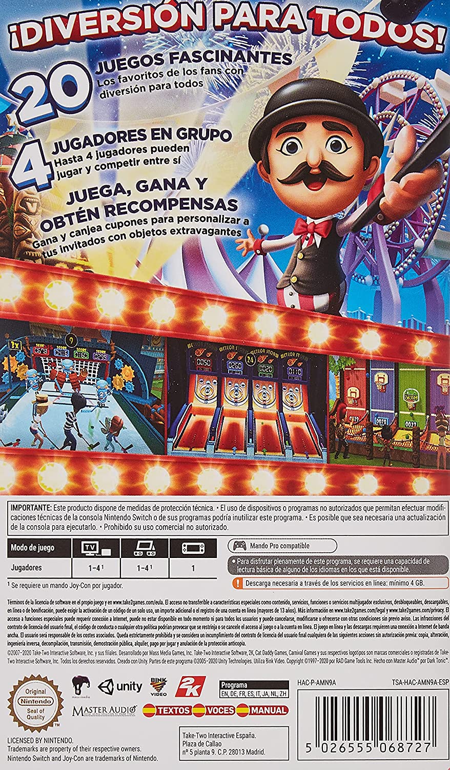 Carnival Games for Nintendo Switch traz de volta a festa para toda a família, agora pela primeira vez no Nintendo Switch. Com mini-games das primeiras versões como novo, tudo em um só pacote. O Carnival Games oferece diversão para todos e pode ser jogado sozinho ou com até três outros jogadores. Bata em home runs, adongue o mais bolo e leve seu cavalo para a linha. &iexex; 20 mini-games que vão permitir que você e seus amigos subam e vencem por cima e por cima de novo!