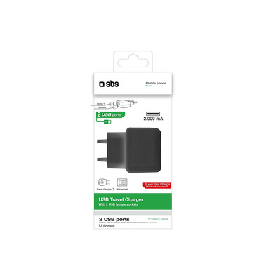 Carregador de viagem 2000 mAh con 2 portos USB SBS