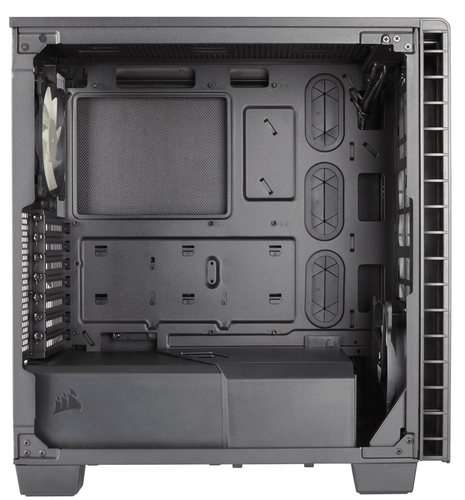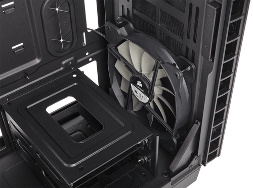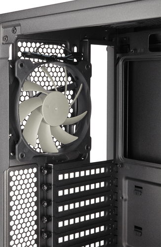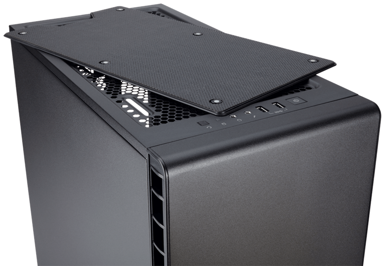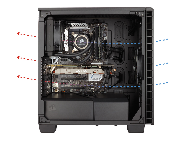 Uma maneira de reduzir o ruído é garantir que os ventiladores não funcionam mais do que deveriam. Ao remover as baias de unidades após os ventiladores de entrada, fornecemos um caminho de fluxo de ar direto mais eficiente para os componentes mais quentes, CPU e GPU. Tudo isso só é alcançado com um design mais inteligente.