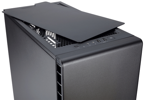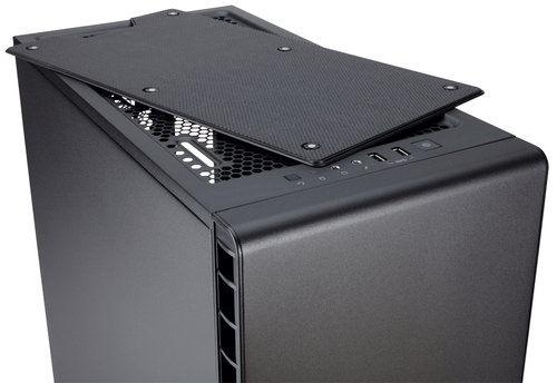 O material absorvedor de ruído localizado no painel frontal, painéis laterais e até mesmo o silêncio do painel superior removível para os componentes internos barulhentos.