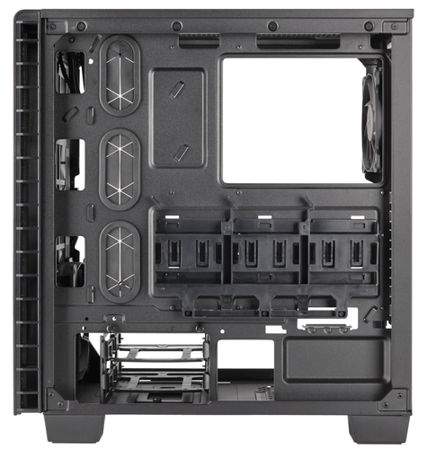 Mantenha o interior do chassi limpo, escondendo todos os cabos e unidades menos atraentes após 3,5 "protetores de baía e modular, limpo e elegante PSU. Você também pode removê-los para a assembléia; você decide.