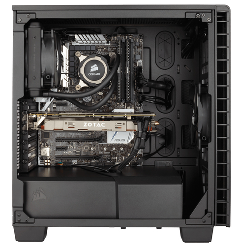 Nós projetamos o Semitorre Carbide Quiet 400Q para reunir toda a potência e capacidade de expansão que você precisa em um design de chassis de aço atraente e compacto. Mesmo os componentes internos barulhentos do sistema funcionarão de forma incrivelmente silenciosa com os painéis silenciosos de absorção de ruído e os componentes mais poderosos permanecerão refrigerados com a tecnologia Direct Airflow