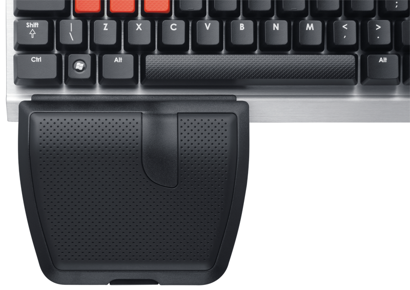 Fabricado em alumínio, o teclado Corsair K60 rompe com o clássico desenho de plástico para oferecer um acabamento elegante e resistente, perfeito para levar a qualquer competição ou lan party. Dentro deste desenho original, destacamos o reposamuñecas ergonômico para a mão esquerda, para poder jogar durante horas sem cansar-nos. Este reposamuñecas inclui um compartimento para guardar as teclas WASD e as numéricas 1-6 que não estejamos utilizando, para levá-las contigo e mudá-las quando mais te convenha.