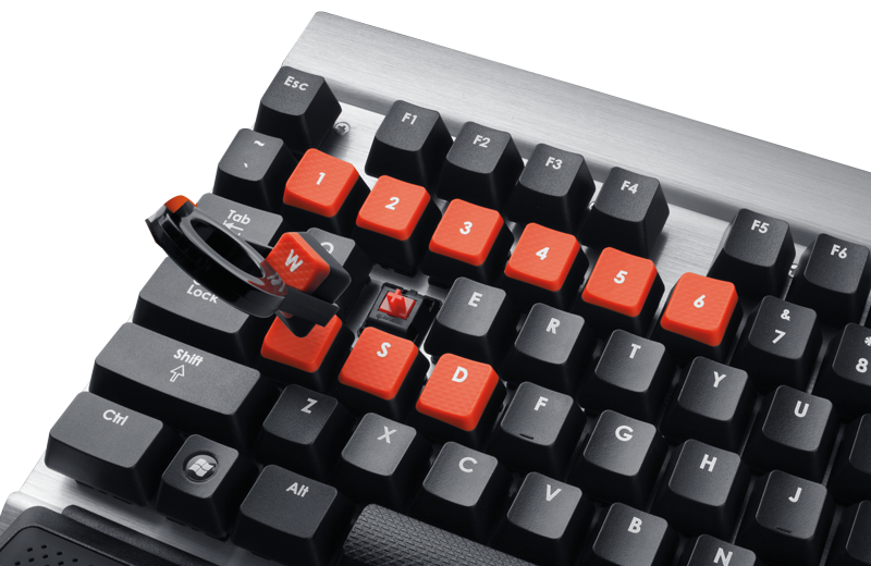 Entre suas novidades incopora a possibilidade de substituir as teclas WASD e o teclado numérico (1 ao 6) por umas teclas de cor vermelha contornadas com uma textura especial para ter o controle absoluto inclusive nos momentos de ação mais frenéticos. Já não terás que tirar a vista do monitor para ser consciente de se estás pulsando a tecla correta.