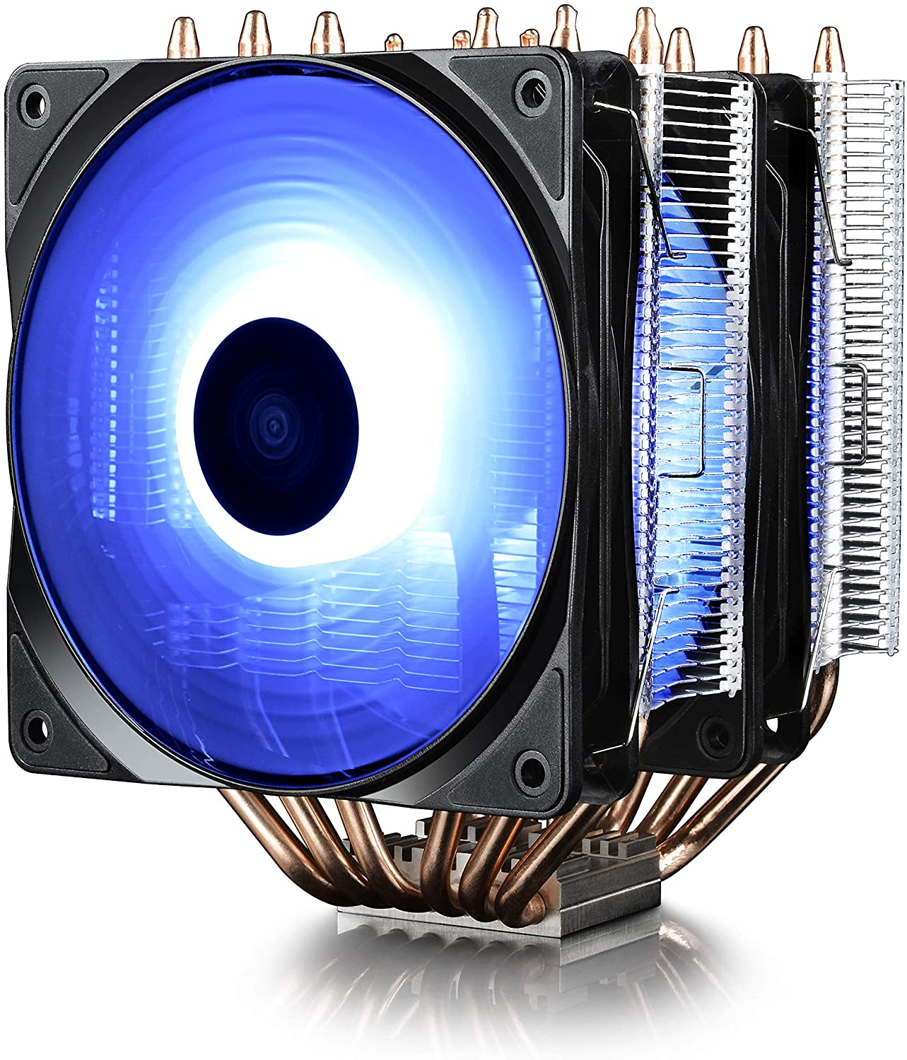 6 tubos de calor de pó de metal sinterizado em forma de U conduzem o calor da CPU para evitar o superaquecimento. A torre dupla, os dispositivos de dissipação térmica adicionam-se a este excelente desempenho de resfriamento.