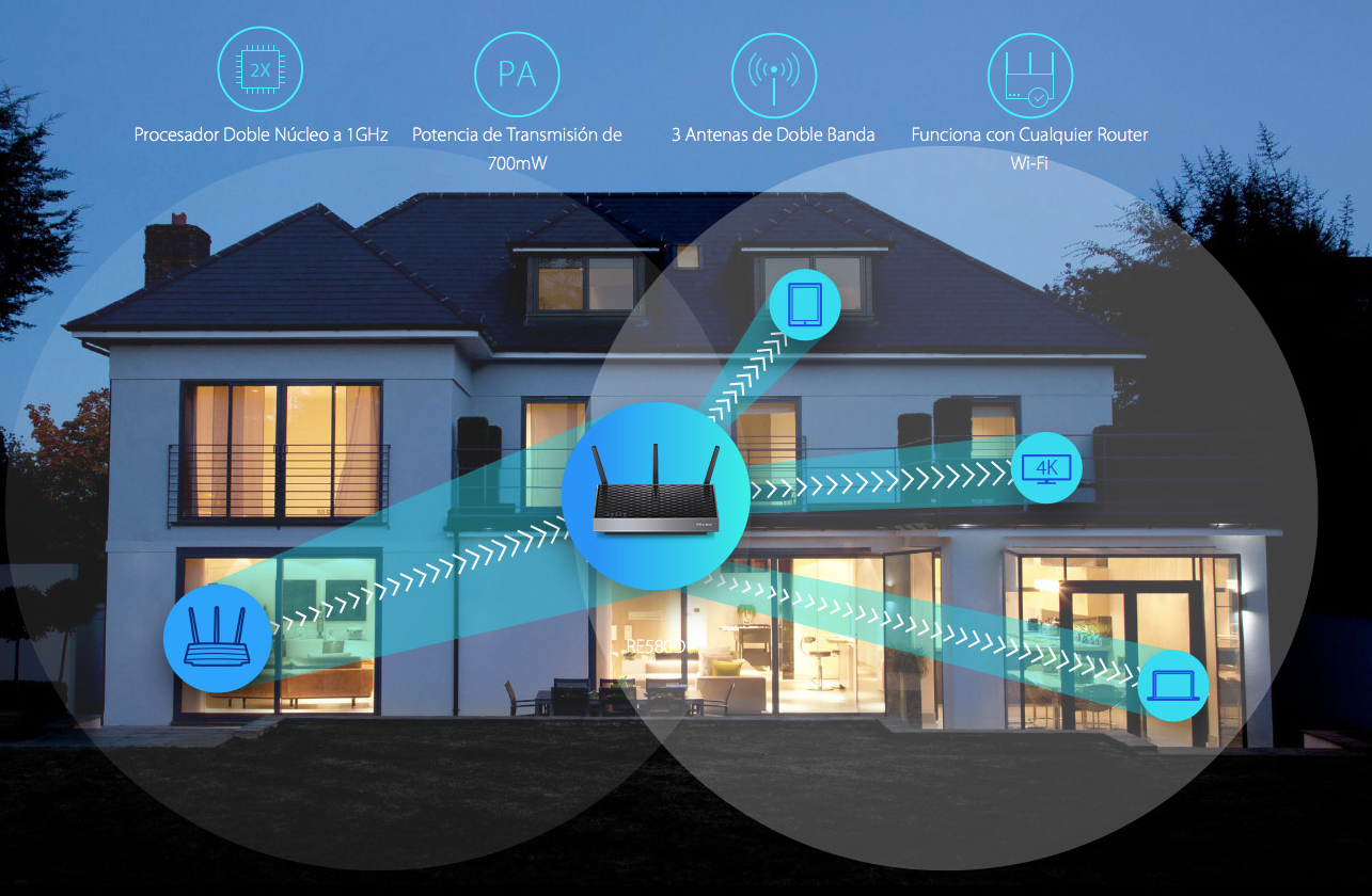 Com três antenas de dupla banda externas e amplificadores de alta potência de 700mW, o RE580D pode estabelecer uma conexão sem fio estável com qualquer roteador Wi-Fi e aumentar sua cobertura de rede para 930 metros quadrados. O processador de núcleo duplo 1GHz fornece o máximo Desempenho Wi-Fi, mantém seu smartphone e tablets conectados enquanto se move por sua