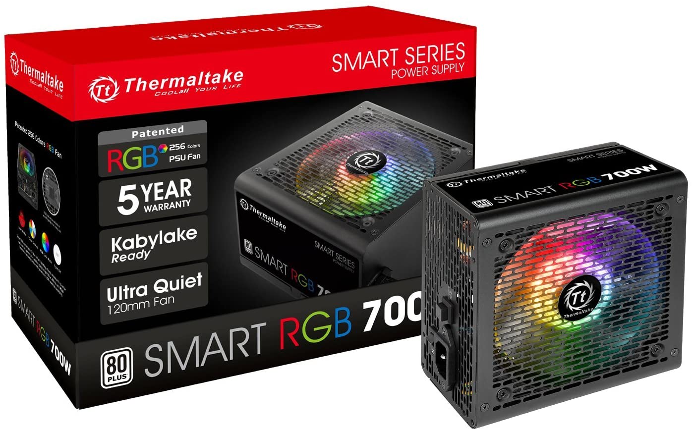 A Thermaltake, como a pioneira em incorporar as luzes da RGB na fonte de energia, lançou a série Thermaltake Smart RGB, que vem com um hub de ventiladores RGB de 256 cores pré-instalado com 15 modos de iluminação para escolher e embutiar a memória.