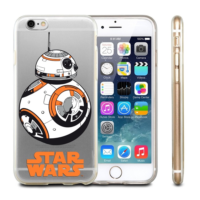 Mantém teu novo iPhone 6 ou iPhone 6S protegido de golpes ou arañazos com esta funda de TPU muito resistente e decorada com motivos do último filme de Star Wars e concretamente de BB-8 o simpático robô que vem a substituir ao carismático R2D2. Permite acesso a todos os botões e portos do dispositivo sem necessidade de retirar a funda.