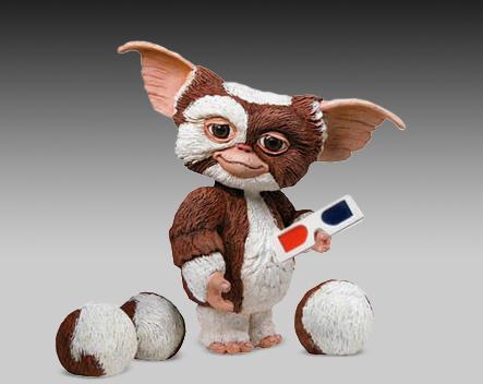Boneco de 10 cm do Gizmo, o Mogwai protagonista da conhecida saga de filmes criada pelo Steven Spielberg nos anos 80. Fabricada pela NECA, esta figura está muito bem detalhada e inclue varios acessórios como os óculos 3D que usavam no filme e tres bolas de pelo de onde nasceríam os enemigos do Gizmo.