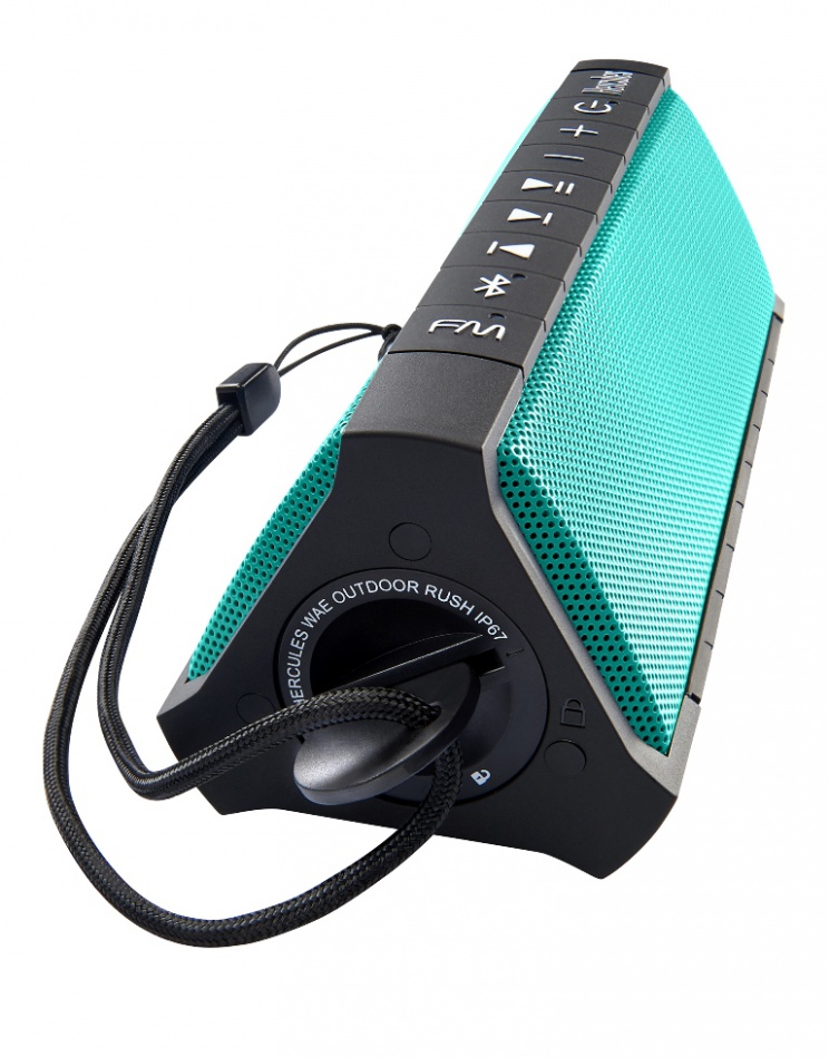 Hercules WAE Rush alto-falante sem fio à prova d'água é válido para uso no exterior proteção IP-67 , o alto-falante sem fio cheio de funções criado para riders: ¡resistente ao pó e à imersão, "Oceanproof" e com um rádio FM integrado!