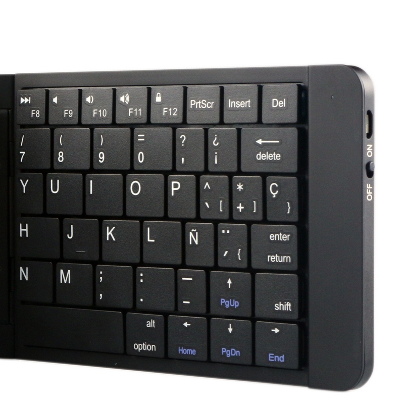 Um teclado pequeno e design elegante que você pode usar em cima para usar com seu tablet como seu formato de dobramento permite que você o carregue em qualquer saco.