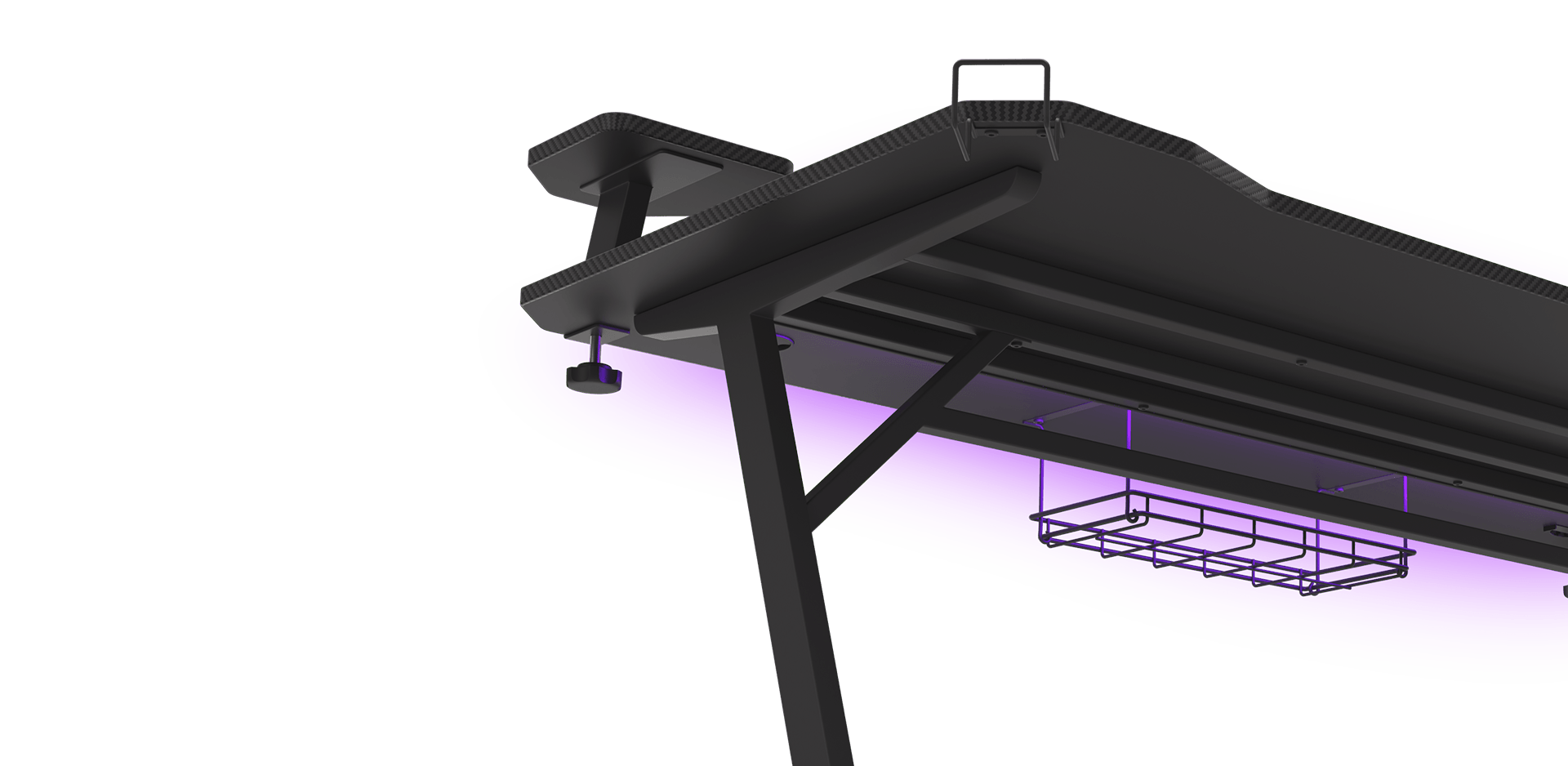 Jogadores profissionais exigem soluções avançadas. É por isso que o desktop Holm 510 RGB é equipado com inúmeras prateleiras e suportes dedicados que são removíveis e permitem uma instalação no lugar certo. As prateleiras para os alto-falantes, os suportes para os fones de ouvido e para um copo economam espaço na superfície da mesa e organizam para a melhoria do espaço. Sob a mesa, há um organizador de cabos, graças ao qual você será capaz de deixar os cabos escondidos e fornecê-los um local seguro para trabalhar.