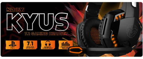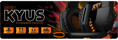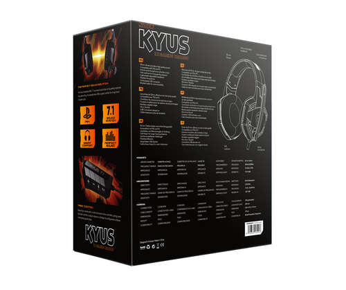 O headset Kyus destaca-se pelo seu som de alta qualidade de 7.1 wrap, que juntamente com as suas almofadas garantem o máximo isolamento acústico do exterior. Seus alto-falantes de 50 mm fornecerão um som de alta qualidade, mesmo nos ambientes barulhentos.
