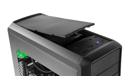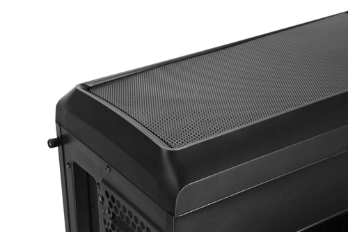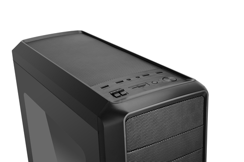O painel superior possui duas portas USB 3.0, duas portas USB 2.0 e leitor de cartões, bem como conexões de áudio. Ele incorpora dois controles de velocidade para controlar até quatro ventiladores, o que permitirá regular a velocidade destes em três posições: Low / Stop / High.