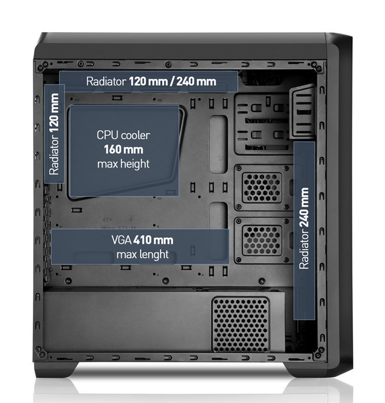 - CPU Refrigeradores: 160 mm (altura máxima)