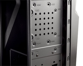 O novo chassis nox, Raven, possui um sistema de montagem fácil para discos rígidos. Suas 7 baías de capacidade e sua montagem de discos SSD em L lhe permitirão montar grandes gráficos sem excluir espaço para armazenar todas as suas informações.