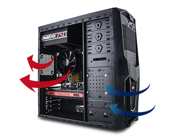 O chassis Nox Raven permite instalar até 3 ventiladores estrategicamente para alcançar um fluxo de ar otimizado e, assim, optar por um alto desempenho do equipamento em qualquer situação.