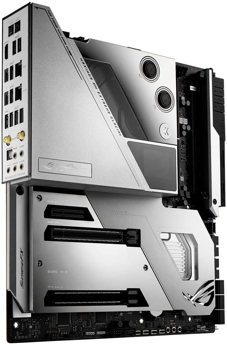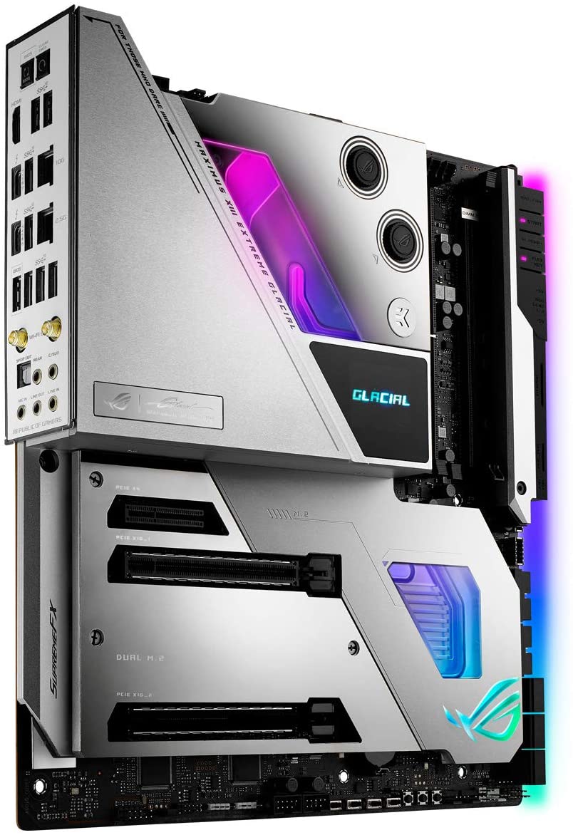 A ROG Maximus XIII Extreme Glacial está equipada com quatro slots integrados M.2, e dois deles oferecem suporte PCIe 4.0 para a mais recente GPU de alta velocidade e SSD. Para lidar com o calor gerado pelo SSD M.2 de alto desempenho, cada unidade é protegida por um dissipador térmico M.2 dedicado e uma placa traseira integrada.