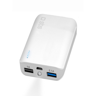 Cargador de baterias externo SBS de tamanho compacto para que possas o levar junto com teu smartphone, tablet, ou qualquer gadget que precises em tua vida diária a pleno funcionamento sem ter que preocupar de sua autonomia. Com 10.000 mAh de capacidade proporciona-nos até 50 horas adicionais. Graças a suas duas entradas USB poderemos carregar de forma simultânea um smartphone no conector de 1A e uma tablet no conector de 2.1 A.