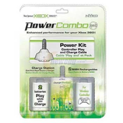 Con PowerCombo tenha sempre suas bateristas recarregadas. A estação de ônus Xbox 360 inclui a base de ônus, com capacidade de duas baterias e duas baterias recargables. A base de ônus inclui leds de estado e a conexão, demora 4 horas em realizar o ônus compelta das 2 bateristas. As bateristas têm uma duração de 25 horas de jogo. Também se inclui cabo power kit para conectar ao wireless controller de Xbox360 e carregar a bateria através do comando sem necessidade de parar de jogar.