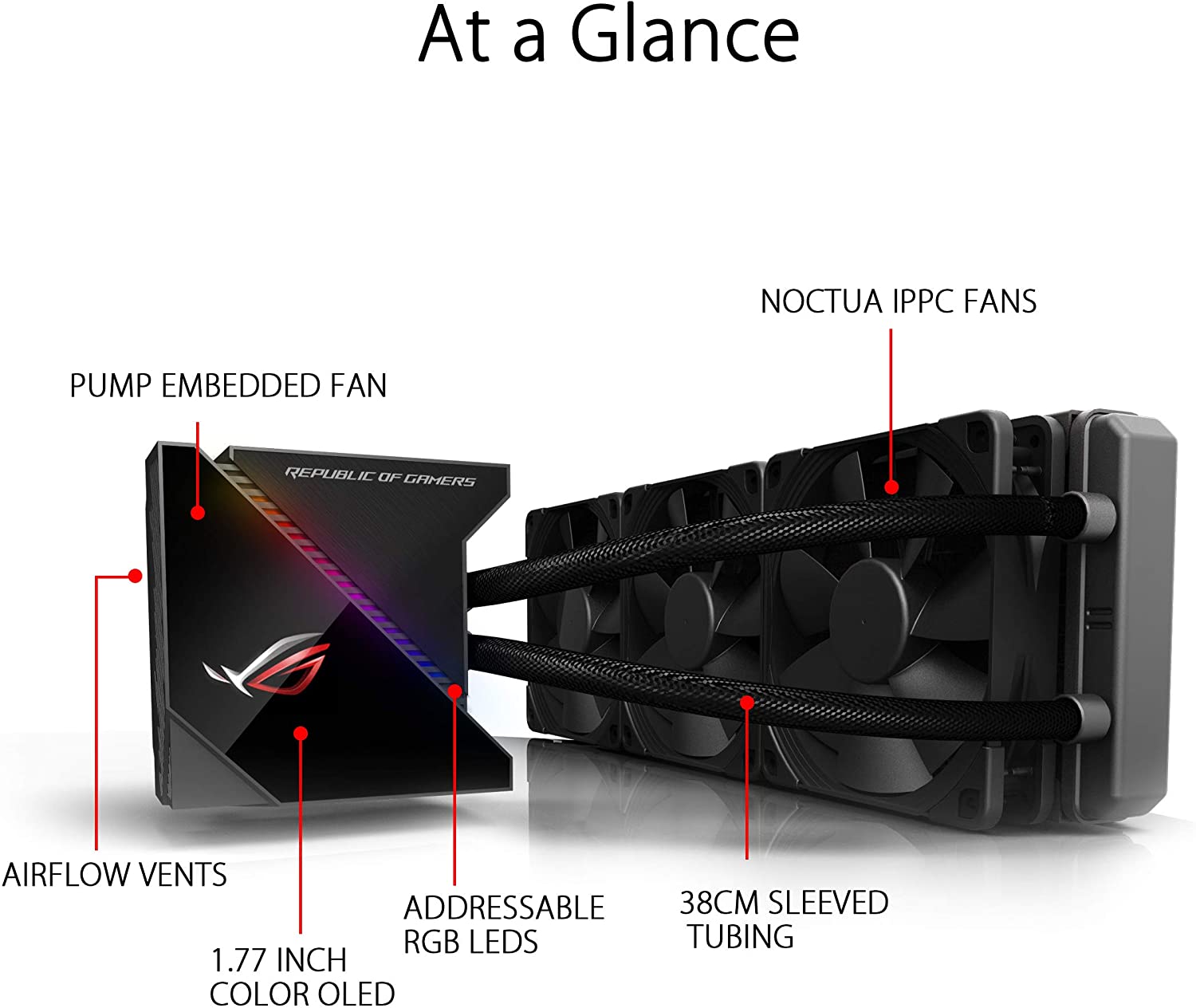 ROG Ryujin é compatível com uma ampla gama de motherboards das plataformas Intel e AMD, permitindo usá-lo com os maiores processadores. Ele inclui um tubo de 38 cm para facilitar o processo de montagem.