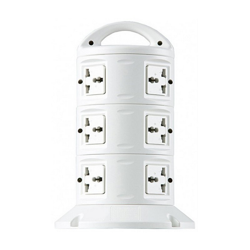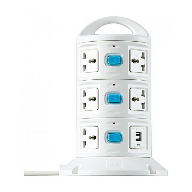 Uma caixa em forma de torre com a qual você pode ter a mesma mesa os conectores necessários de uma maneira mais recente e confortável. Este modelo tem 12 soquetes convencionais e 2 entradas USB.
