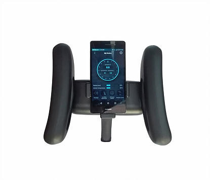 Ele tem um suporte de telefone celular para ter o aplicativo em ou GPS.
