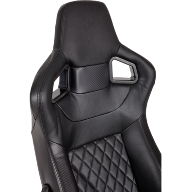 O encosto e o assento da Corsair T1 Raça são da melhor qualidade, seu design é muito confortável graças ao uso de espuma de poliuretano na parte interior e um revestimento de Couro PVC 3D na parte externa. O estofado tem forma de losangos e é muito atraente.