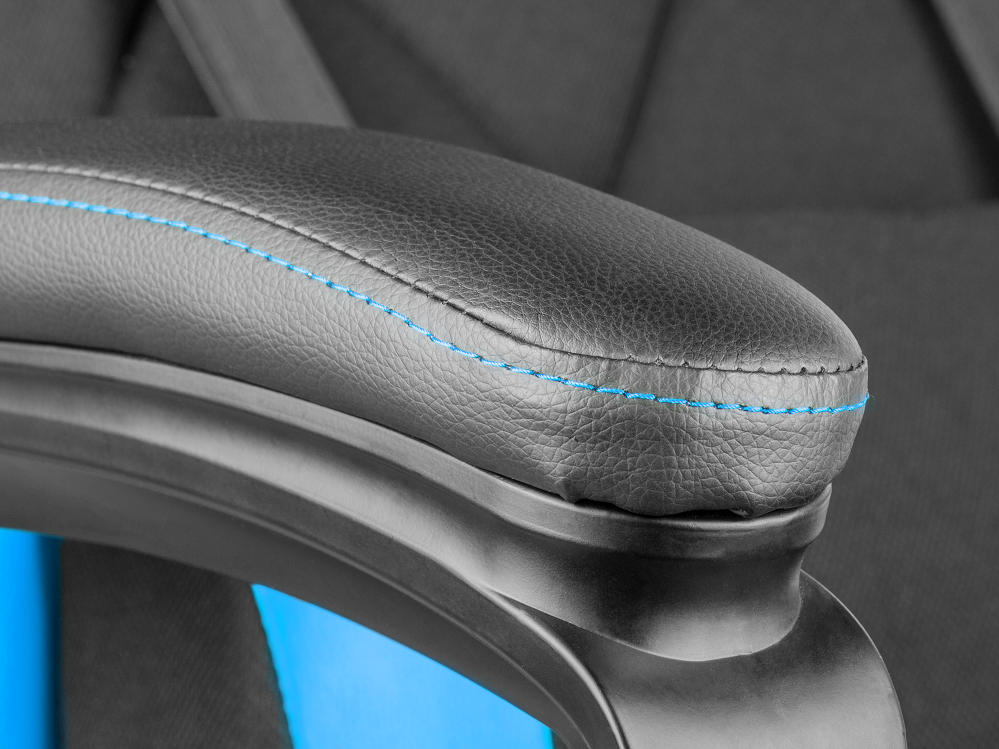 Estofamento da cadeira é preenchido com espuma de alta qualidade de 4,5 cm de espessura no encosto e 6 cm de espessura no assento. Além disso, tanto o assento quanto o encosto tem uma forma tal que garantem o máximo conforto e suporte para a coluna vertebral do jogador. A cadeira é coberto com um material de nylon mate, vida longa e couro ecológico de alta qualidade. O tecido do assento é acolchoado e costurada triplamente, o que não só garante a durabilidade do acabamento da cadeira, mas também enfatiza o seu design único.
