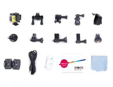 1 x Bateria 900mAh Li-ion; 1 x Manual Multilanguage 2 x adesivos SJCAM