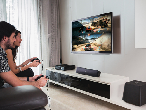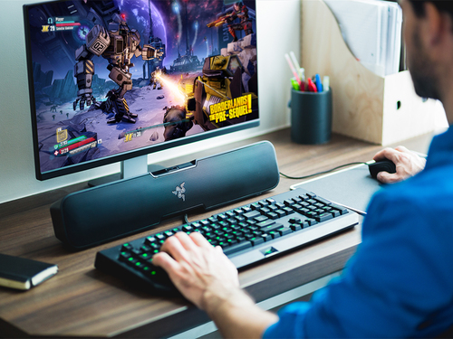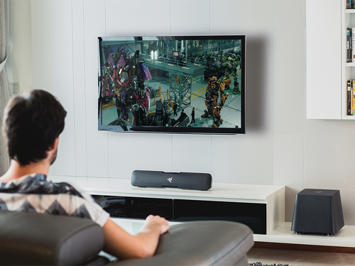 O canal Razer Leviathan 5.1 A barra de som surround é facilmente conectada a qualquer monitor de desktop ou instalação de console de sala de estar. Esta barra de som, com uma versatilidade para mudar constantemente de posição em qualquer situação, inclui uma tecnologia Dolby ® completamente inovadora e um subwoofer independente com o qual você pode projetar sons complexos recriando as cenas épicas de batalhas no jogo ou jogando em "stream" suas melodias favoritas do smartphone.