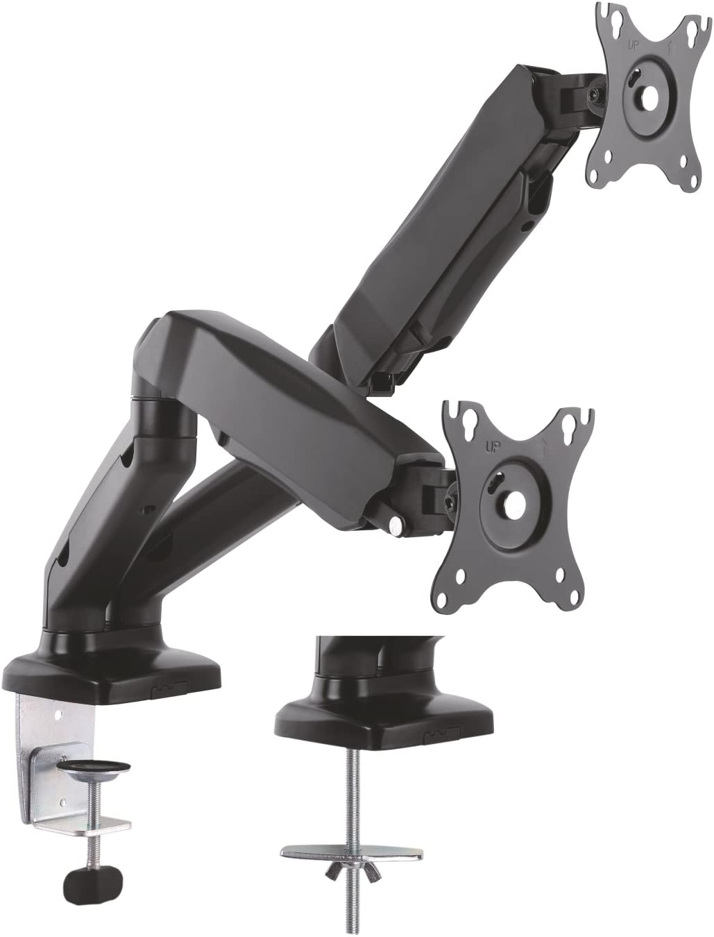 Suporte de mesa de contrapeso rotativo e tilátil (3 pivots, 2 braços) de 13 ” -27 ”. Feito de alumínio de alta resistência e pintado com tinta eletrostática para um acabamento perfeito.