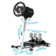 O Wheel Stand Pro DD incorpora um request for release mecanismo, que permite fazer ajustes de uma forma pronta e simples sem a necessidade de ferramentas. Este sistema torna fácil alterar a largura da base do suporte, que é ajustável entre 525 mm e 575 mm, o que permite que você se adapte perfeitamente ao seu espaço de jogos.