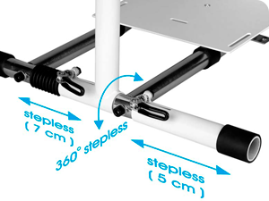 Um dos recursos pendentes do Wheel Stand Pro DD é a sua ajustabilidade completa. O suporte é ñ adicionado para adequar jogadores de qualquer tamanho ñ es ou para ser usado com qualquer tipo de cadeira ou sof &aaimde; o que faz dele uma escolha ideal tanto para os gamers casuais quanto para pilotos de simulador profissional.