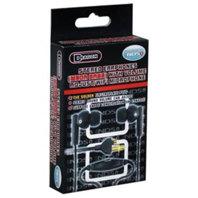 Fones stereo para utilizar com Nintendo DSi, vêm com um controle de volume e microfone integrado sendo compatível com qualquer versão de DSi.