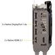 A parte de trás do cartão revela uma série de melhorias. A placa de proteção metálica possui um furo de ventilação que permite que o ar quente escape para os extrativistas do chassi, em vez de ser reciclado com o ar. Sob a GPU, um suporte fortalece a conexão entre a GPU e o difusor. O suporte de conexão de aço inoxidável protege as portas enquanto fornece um processo de montagem seguro. E o Dual Bios Switch permite que você selecione os modos de desempenho e silêncio sem precisar recorrer ao software.