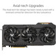 O difusor de calor concentra o excesso de temperatura em tubulações de calor que o transportam para uma matriz de barbatana que se estende ao longo do perfil de 2,7 slots. Esta geração da placa gráfica TUF Gaming apresenta uma pia para a VRAM que mantém a temperatura de memória em bay.
