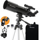 - A abertura de 80 mm é ideal para exibição lunar e planetária, assim como para uso de terra