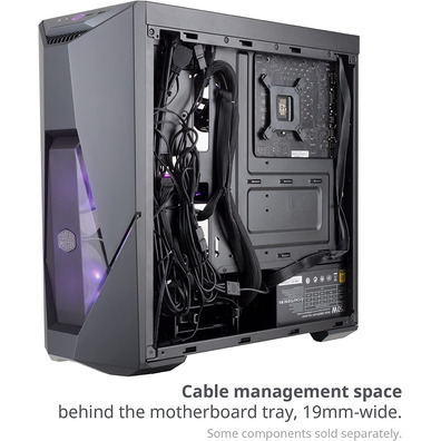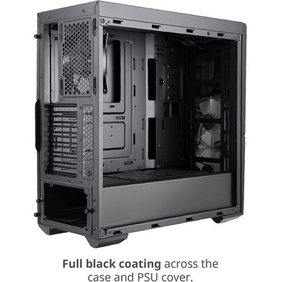 O MasterBox suporta dissipação de CPU com uma altura até 160 mm, placas gr com comprimento de até 400 mm, e fontes de alimentação de até 180 mm de comprimento.