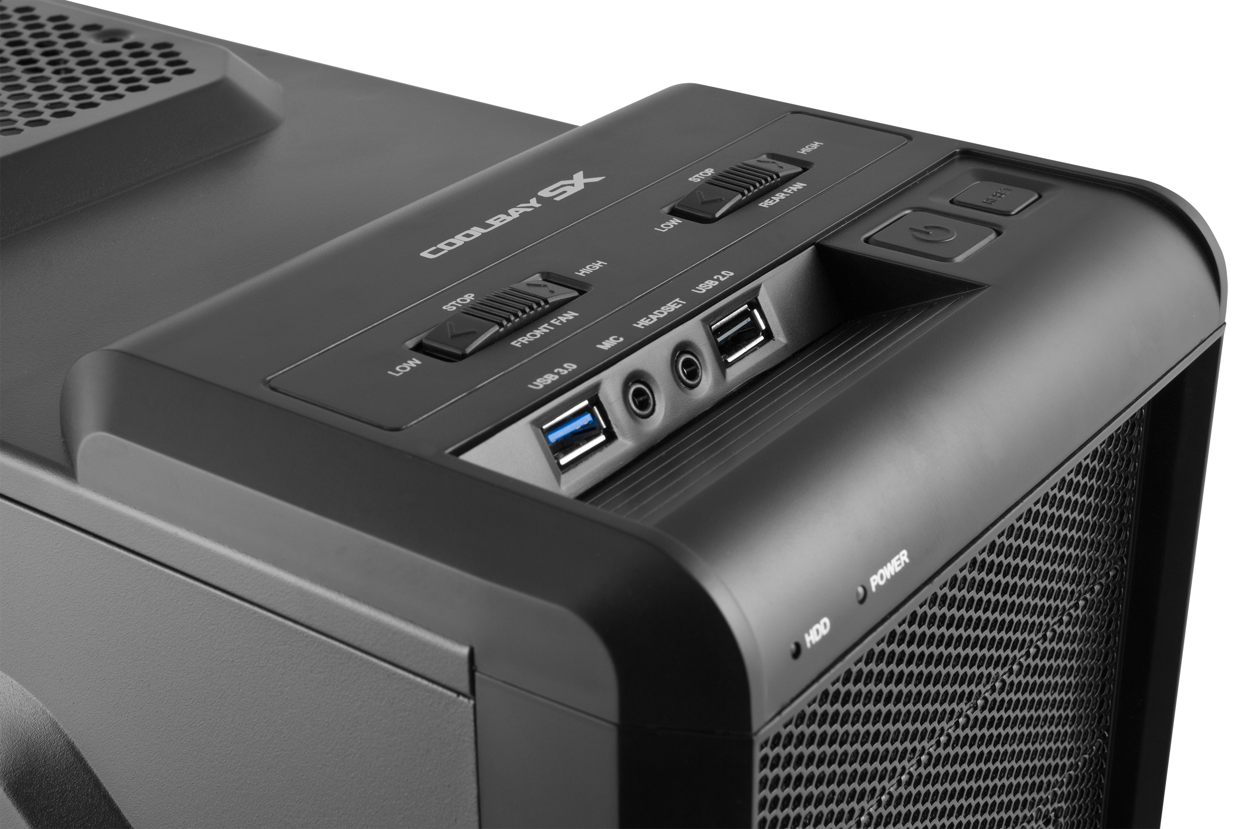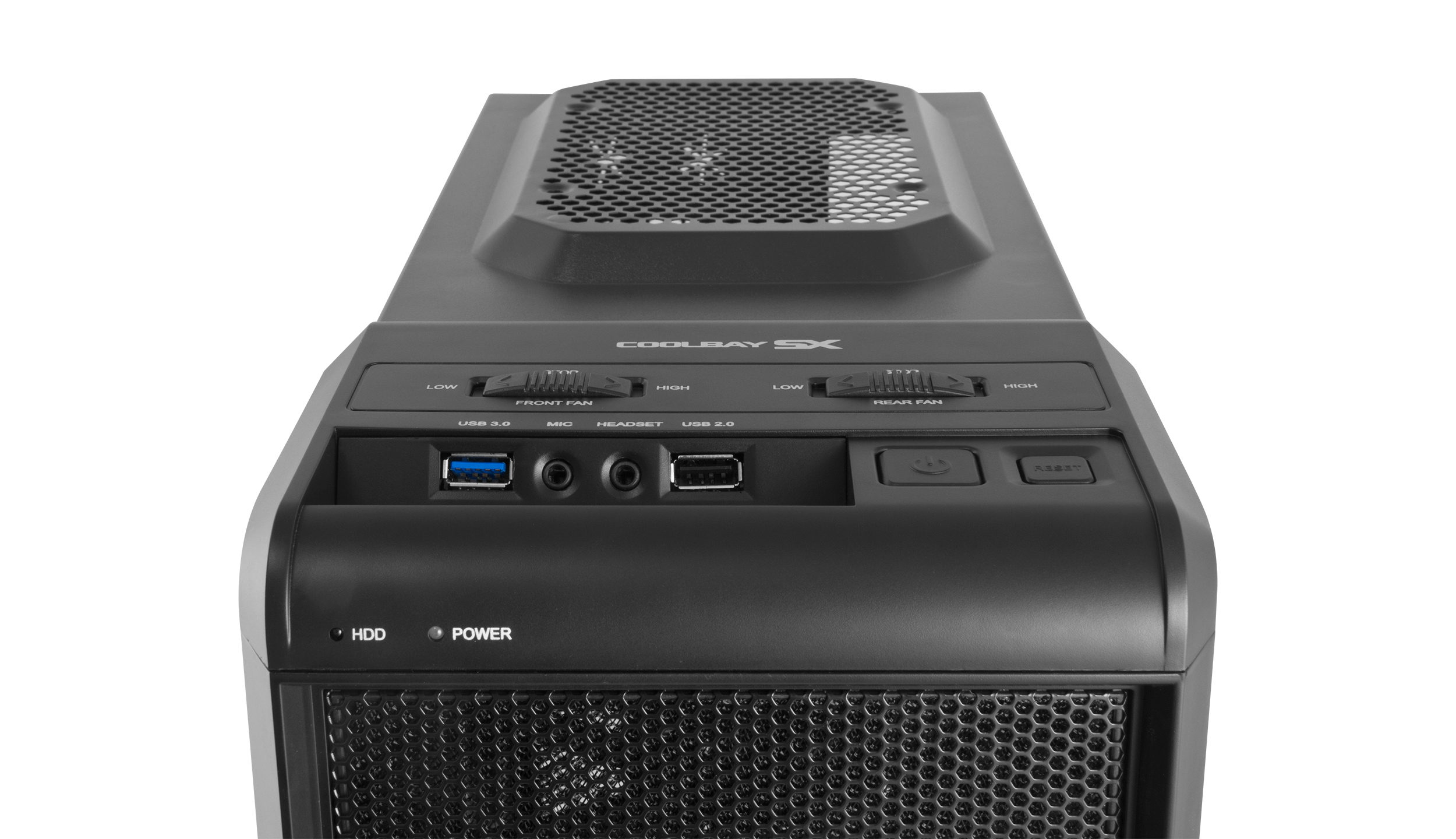 Com as portas acessíveis a partir do topo do Coolbay SX você terá tudo o que você precisa. Você pode controlar a velocidade dos ventiladores e usar portas USB 3.0 e 2.0 para todos os seus dispositivos móveis.