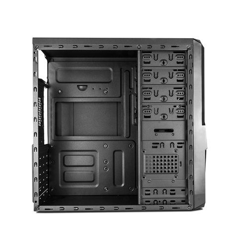 Ele tem três baías externas de 5.25 "convertível em 3.5" e cinco baías internas, quatro de 3.5 "e uma de 2.5" que fornece ao usuário várias opções de armazenamento.