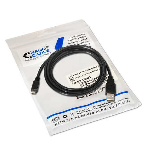 USB 2.0 NANOCÁVEL, TIPO A / M-MICRO USB B / M, 0,8 M
